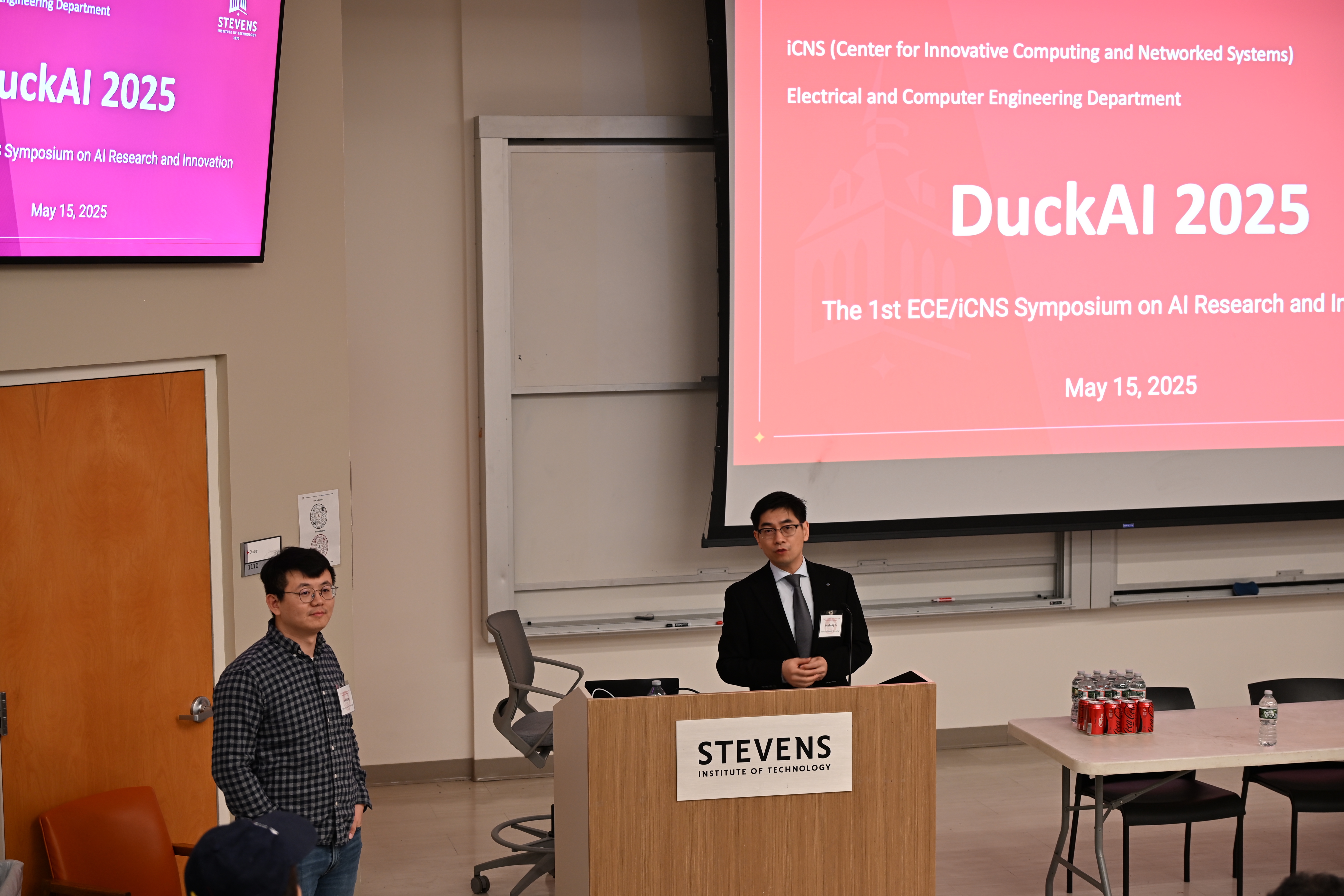 The 1st iCNS/ECE Symposium on AI Research and Innovations (DuckAI 2025) is a one-day event organized by the Center for Innovative Computing and Networked Systems (iCNS) and the Department of Electrical and Computer Engineering at Stevens. It aims to bring together industry partners, researchers, faculty, and students to discuss recent developments of AI techniques and applications. The event features two technical sessions with invited talks and one poster & demo session. Around 30 student teams will showcase their AI projects for Spring’25. This event is open to the public with free registration.